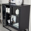 With two glass doors, a powder-coated steel frame and two relief surfaces, the Bakal cabinet isaring;p perfect for showcasing your favourite foods and keeping valuable supplies on hand. The doors are adorned with elegant brass studs that add a touch of luxury.