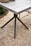 Create a modern and inviting atmosphere on your patio with the Bondi Beach Outdoor Bistro Table. The table features four dark brown aluminum legs that meet halfway to form a sturdy column for stability and style. The table top is made of fine gray teak planks for an elegant and natural feel.