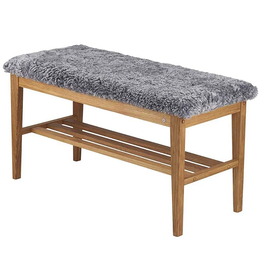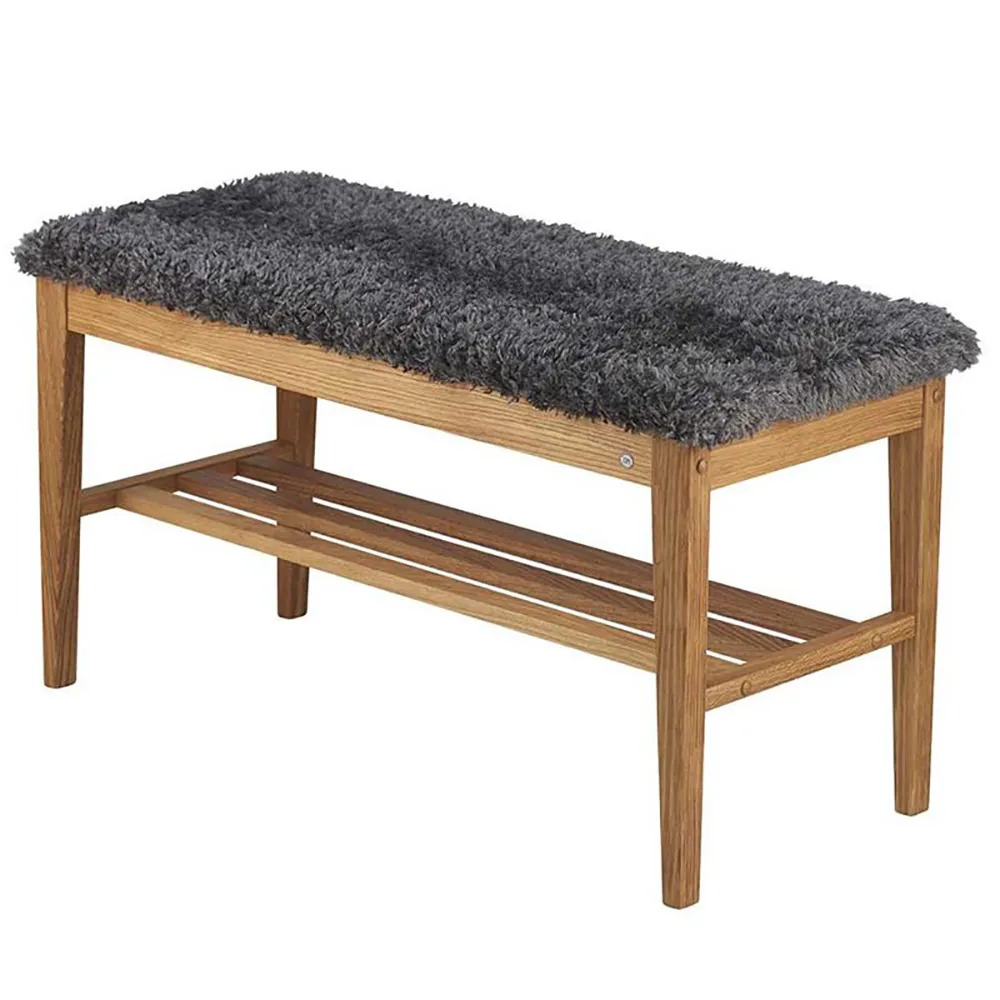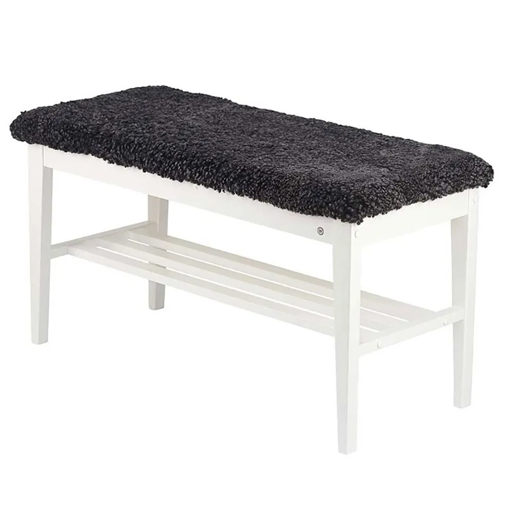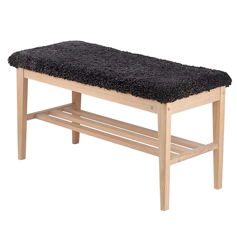 Nadja Bench Black stained Oak/Sheepskin look light grey