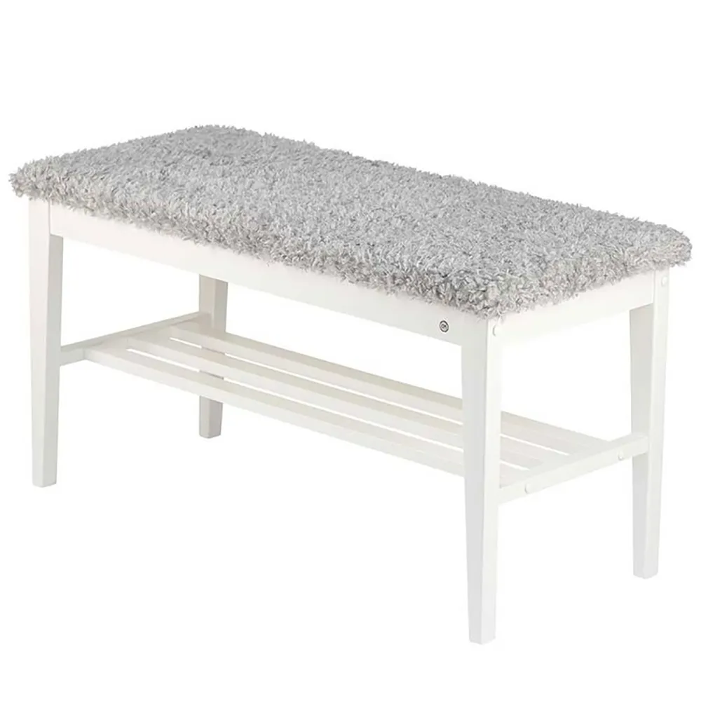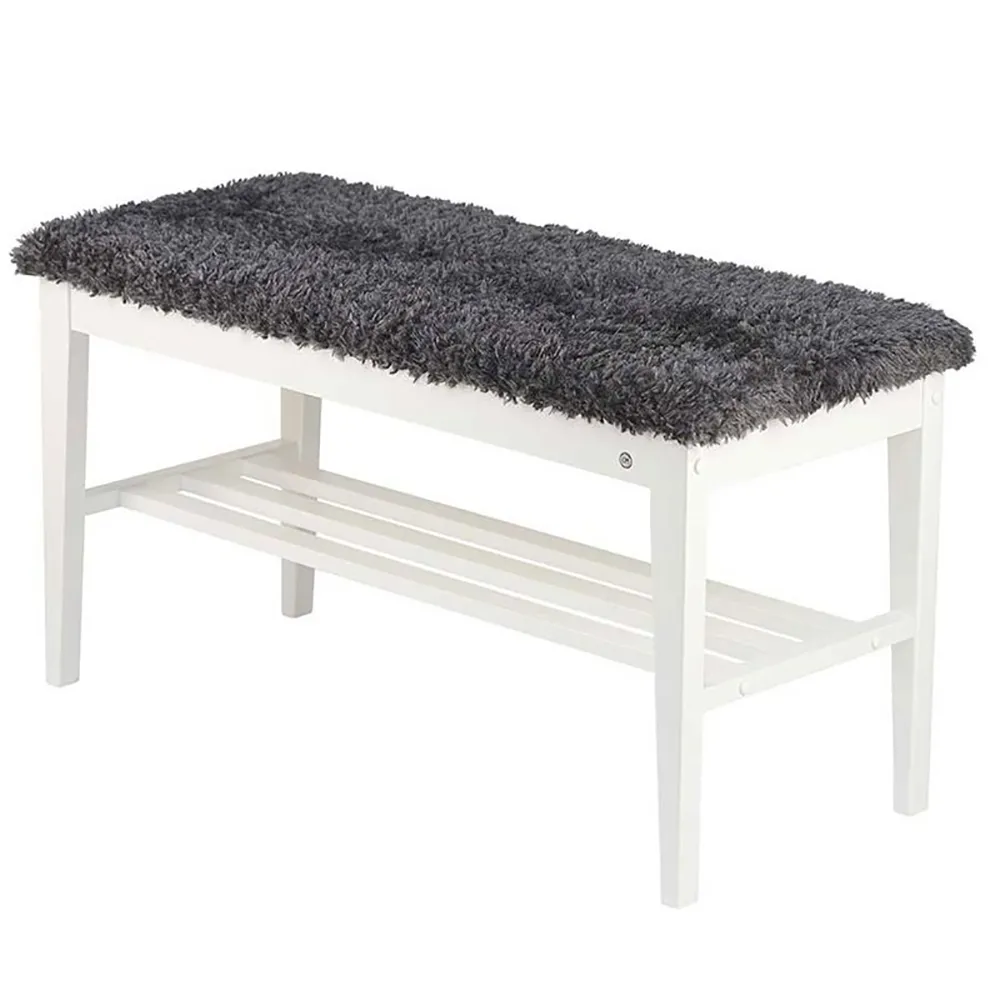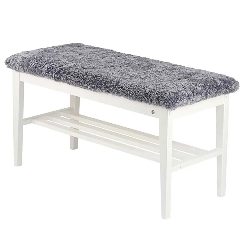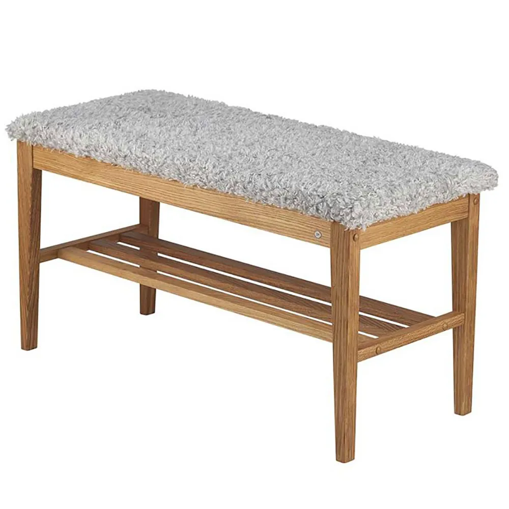 Nadja Bench Black stained Oak/Sheepskin look light grey