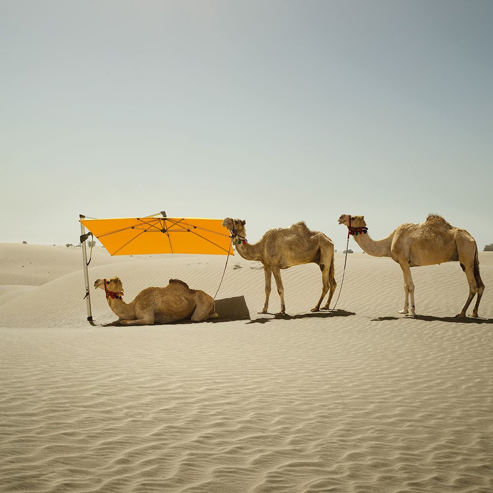 The Sombrano S+ is a parasol from Glatz where the canopy tilts up to 54° on both sides. It can be easily rotated 360° on its axis by manoeuvring the swivel ball bearing base.