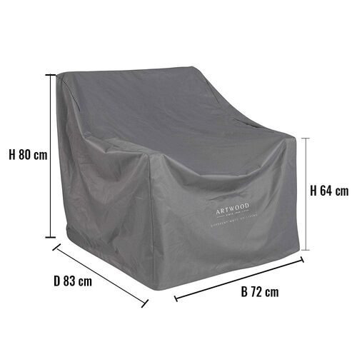 This furniture cover fits the Malaga, Huntington and Marbella armchairs from Artwood. The furniture cover is water-repellent and breathable to prevent condensation. We do not recommend using this as winter storage, but only as protection during the summer months.