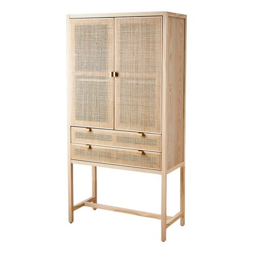 The Harry cabinet from Affari is an elegant and functional piece of furniture that combines natural beauty with practical solutions. Made of durable pine, the cabinet gives a warm and inviting look that fits perfectly in any room. The stylish doors and two practical rattan drawers add to the cabinet's unique character, offering both ventilation and a charming detail that enhances the interior.