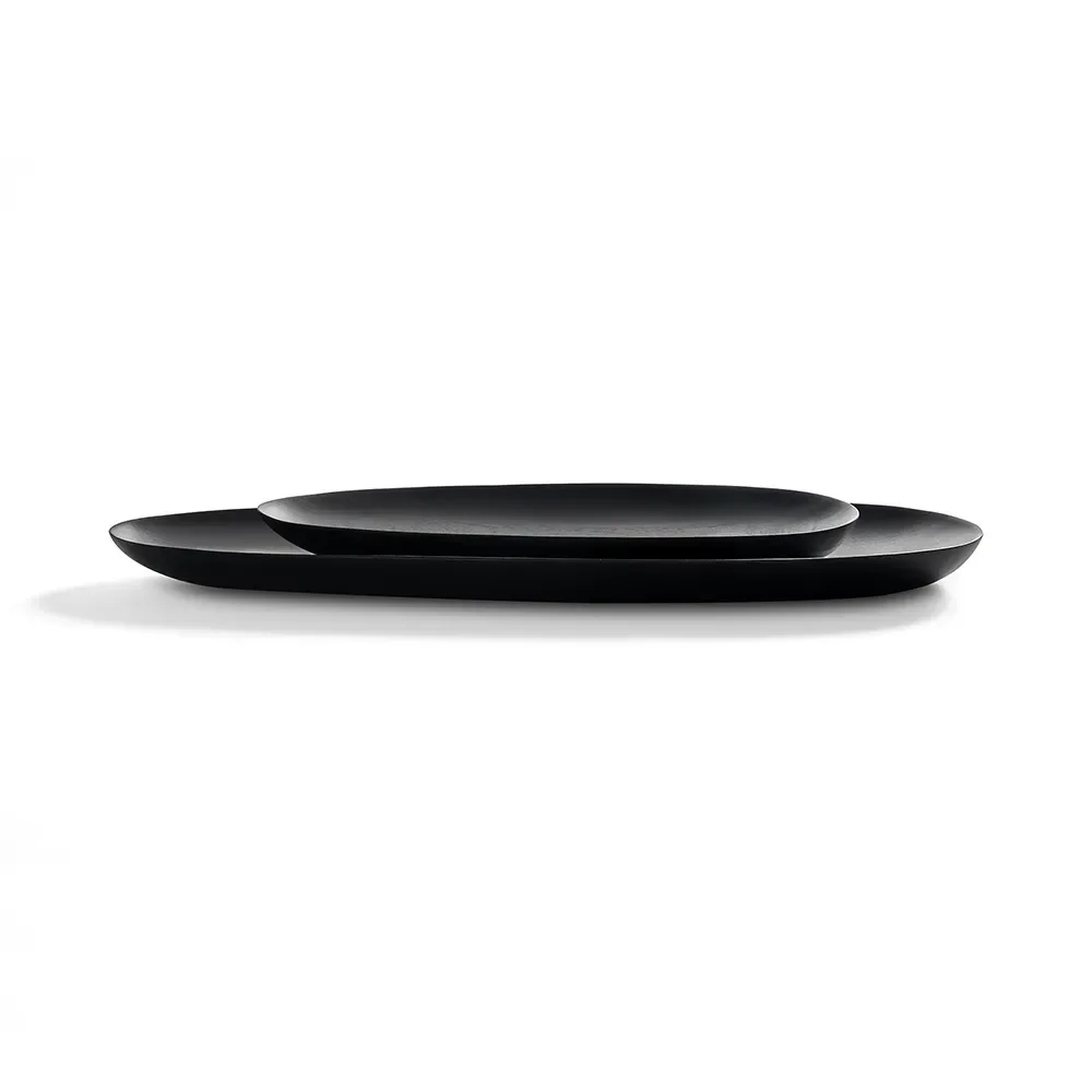 Thin oval trays lacquered maple-set of 2