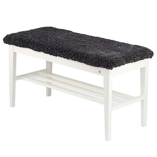Nadja Bench White lacquered Birch/Sheepskin dark grey