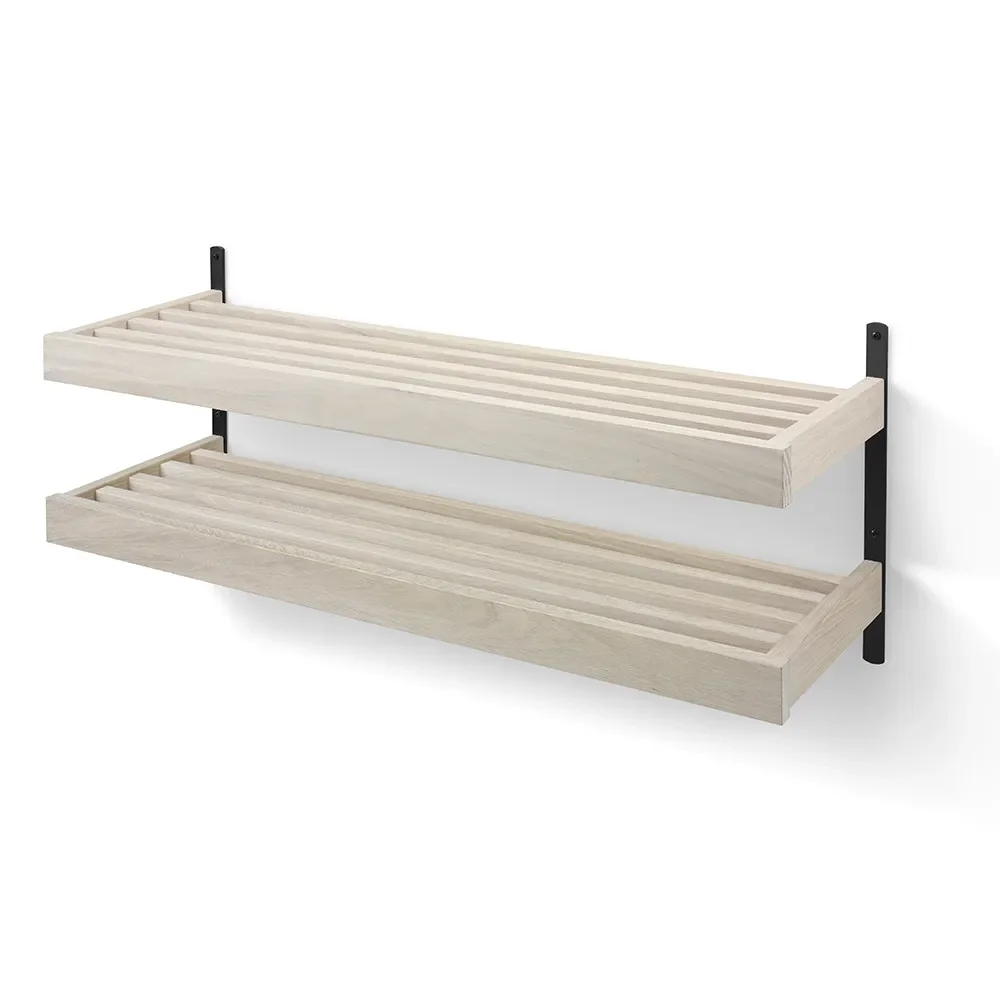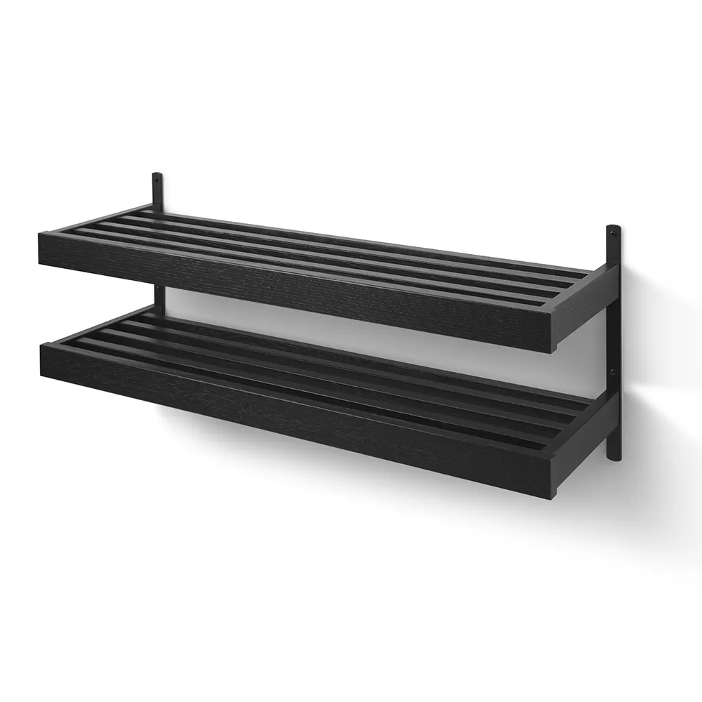 Nadja Shoe shelf 100 cm 2 level wall mounted Oiled Oak/Matt Black steel