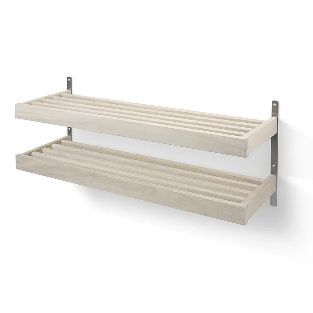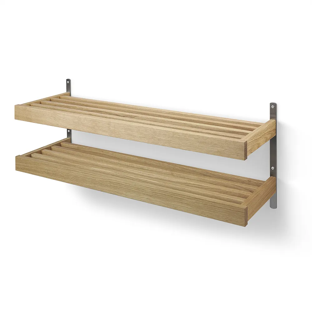 The Nadja shoe rack is a stylish and practical wall model with two shelves and details in steel. This Swedish-made piece of furniture from small Swedish company Oscarssons Möbel offers both functionality and design in your home. For a complete and harmonious hallway, you can easily combine the Nadja shoe rack with the matching Nadja hat rack.