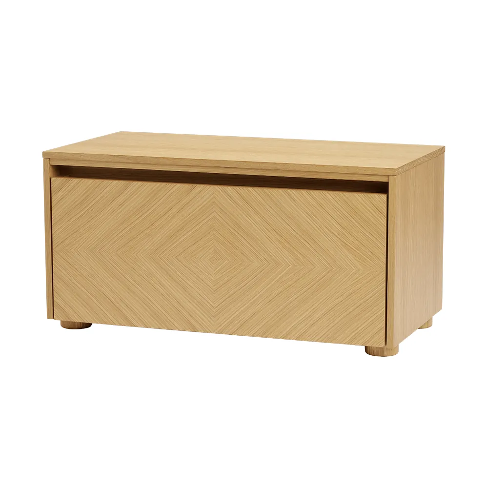 Crafted in oak, this piece of furniture fits perfectly in different rooms: in the hallway, where it provides practical storage space for shoes and a comfortable seat for getting dressed; in the children's room, where it can become a cosy reading corner or a practical cupboard. The Hideaway is also ideal as a stylish TV bench that cleverly hides TV equipment and less stylish cords.